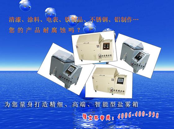 YWX/Q-750PP鹽霧腐蝕試驗箱為北京雅士林最新推出的新一代產品,箱體采用進口PP板材,最高耐受溫度為80℃,整個試驗箱設計科學合理,制作工藝精致,且外觀大方簡潔,特別是增強了鹽霧測試機的科技含量,不僅能滿足傳統的中性鹽霧試驗(NSS試驗),同時還滿足醋酸鹽霧試驗(ASS試驗)和銅加速醋酸鹽霧試驗(CASS試驗),達到了世界先進水平,在同行中處于絕對領先的地位。 分享環境 分享雅士林設備http://m.wg258.cn