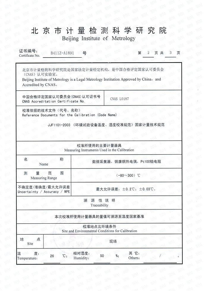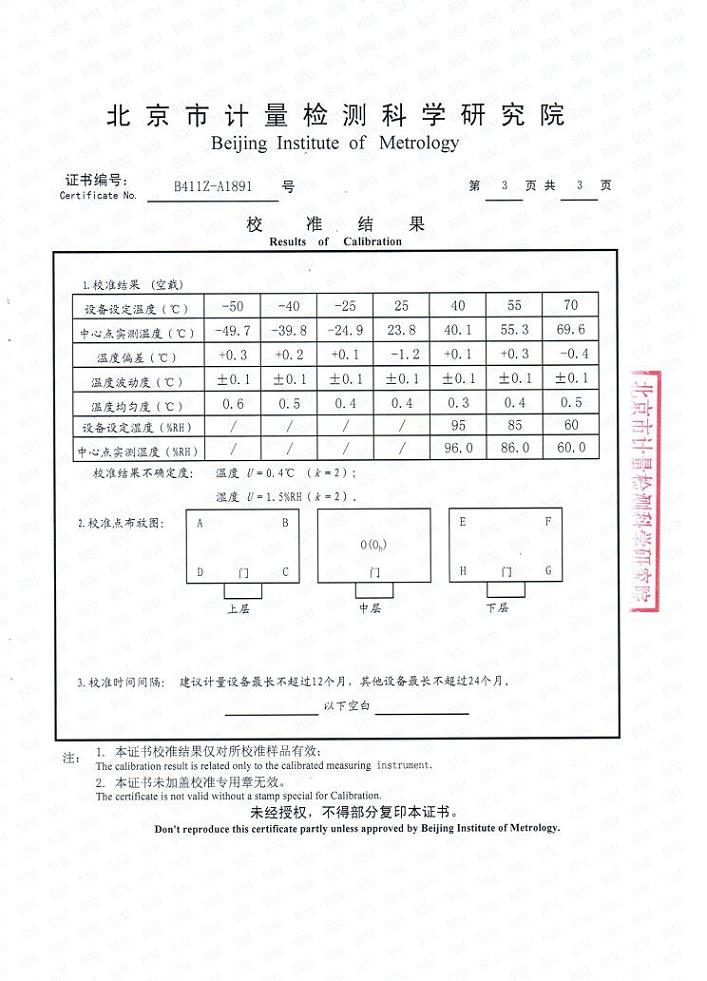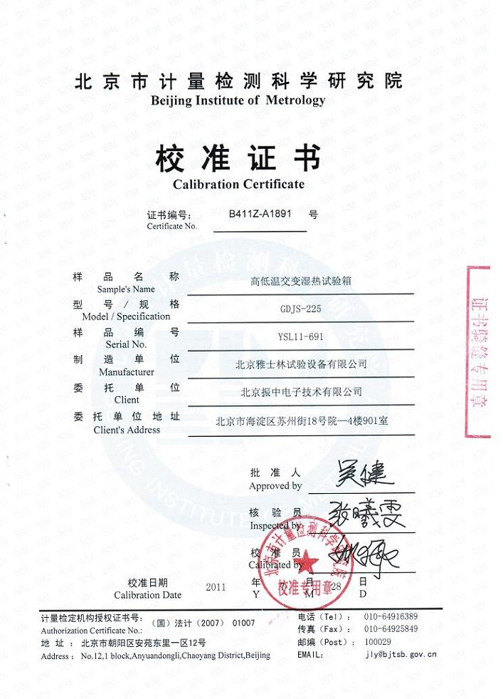 >>高低溫交變濕熱試驗箱校準證書-北京計量院-振中電子