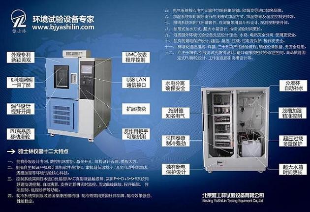 寶劍鋒從磨礪出,梅花香自苦寒來。雅士林儀器持續(xù)創(chuàng)新,開發(fā)最前沿的測試技術(shù),使雅士林的產(chǎn)品肯有更加大的生命力。雅士林儀器定位于中高端客戶群,高品質(zhì)、高性能高低溫交變濕熱試驗箱系列的產(chǎn)品特點: 1、擁有外觀設(shè)計專利,數(shù)控機床剪折、激光開孔,結(jié)構(gòu)設(shè)計合理,新穎美觀。 2、擁有自主知識產(chǎn)權(quán)和計算機軟件著作權(quán),掌握超低溫制冷、溫度自動補償加熱、淺槽加濕等環(huán)境試驗核心科技。 3、控制系統(tǒng)采用日本進口優(yōu)易控UMC系列7英寸高清真彩液晶觸摸顯示屏,溫度控制采用P•I•D+S•S•R系統(tǒng)同頻道協(xié)調(diào)控制,自動演算的功能,支持電腦實時監(jiān)控、歷史曲線回放、程序編輯、遠程診斷等功能。 4、制冷系統(tǒng)采用原裝法國泰康壓縮機組,制冷劑采用美國杜邦品牌,制冷效果強勁,性能穩(wěn)定。 5、電氣系統(tǒng)核心電氣元器件均采用施耐德、歐姆龍等進口知名品牌。 6、加濕系統(tǒng)采用國際流行的淺槽式加濕方式,加濕效果及濕度控制更精準。 7、照明系統(tǒng)采用飛利浦套件,觀測窗采用漏斗形設(shè)計,觀測視野更開闊。 8、抽屜式加水方式,超大水箱設(shè)計,持續(xù)試驗時間更長。 9、沿襲國外環(huán)境試驗設(shè)備先進設(shè)計理念,水路、電路完全分離,使用更安全。 10、獨有的漏電保護設(shè)計,超溫、超壓、過載、過電流保護,操作更安全。 11、標準化圖紙接線、焊接,三十五項嚴格檢驗流程,確保設(shè)備質(zhì)量,無安全隱患。 12、專注于細節(jié),引線測試孔防銹設(shè)計、進口硅橡膠密封條雙層密封、高品質(zhì)可固定式PU腳輪設(shè)計、工作室底部引流槽設(shè)計等。 全國免費服務電話:4006 400 998 |